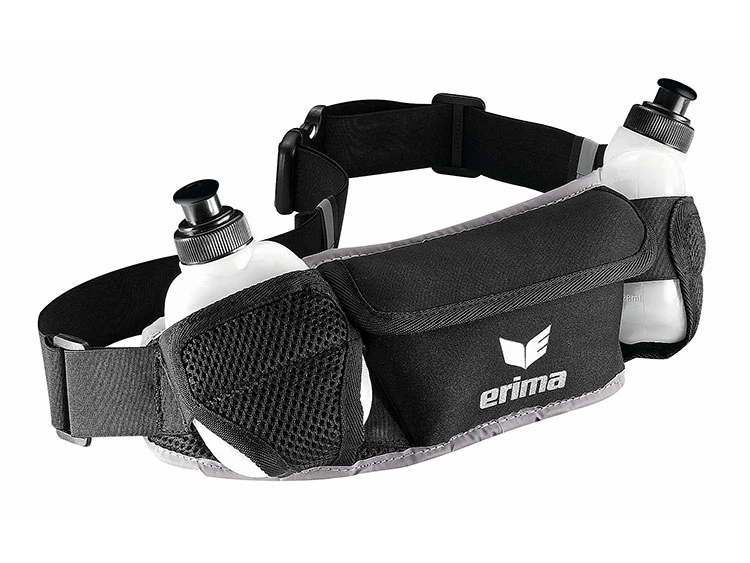 Funktionaler Trinkgürtel / Laufgürtel für Getränke, Snacks etc., verstellbare Gürtelweite inkl. elastischer Einsätze, 2 Flaschen à 200 ml, reflektierende Einsätze