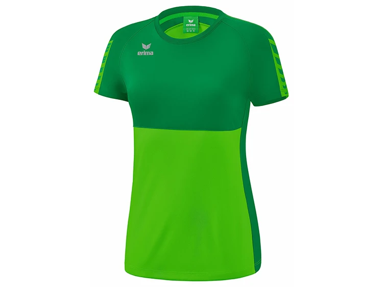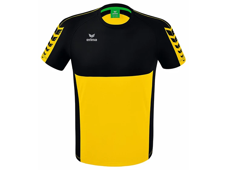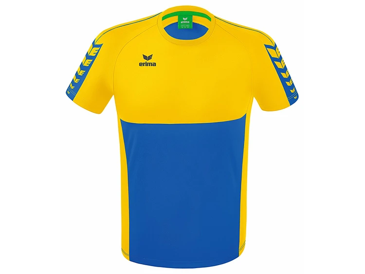 Dein idealer Trainingspartner! Mit dem Erima Six Wings T-Shirtist dein Team jederzeit gut ausgerüstet. Das T-Shirt kommt im stylischen, zweifarbigen Look der neuen Erima „Six Wings“-Teamline und überzeugt mit seinen kräftigen, modernen Farben. Ein echter Blickfang ist das Erima-Schwingen-Design auf der Schulter. Das „Six Wings T-Shirt“ punktet jedoch nicht nur mit seinem stylishen Design, sondern auch durch seine hohe Funktionalität. Das schnelltrocknende Funktionsmaterial sorgt für ein angenehmes Tragegefühl in jeder Situation. Abgerundet wird der hohe Tragekomfort durch einen gerippten Rundhalsausschnitt. Optimal kombinierbar mit allen Teilen aus der Six-Wings Serie des deutschen Sportartikelherstellers ERIMA mit Sitz in Pfullingen. Lieferbar als Unisex-oder taillierter Damenschnitt in 11 verschiedenen Farben. Gern beraten wir euch auch über den perfekten T-Shirt Druck.