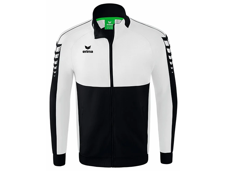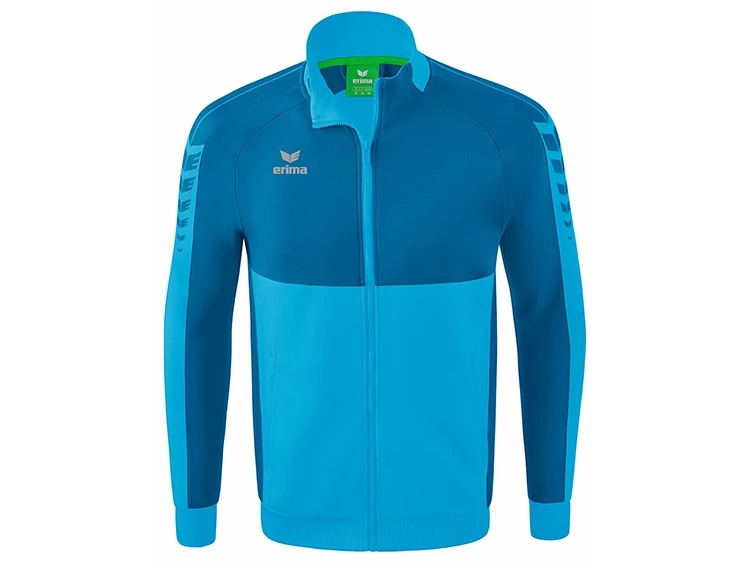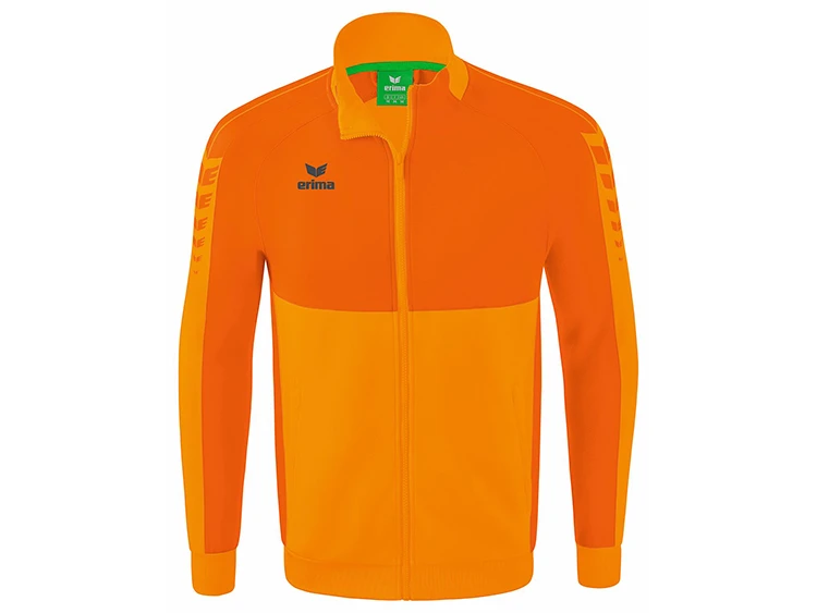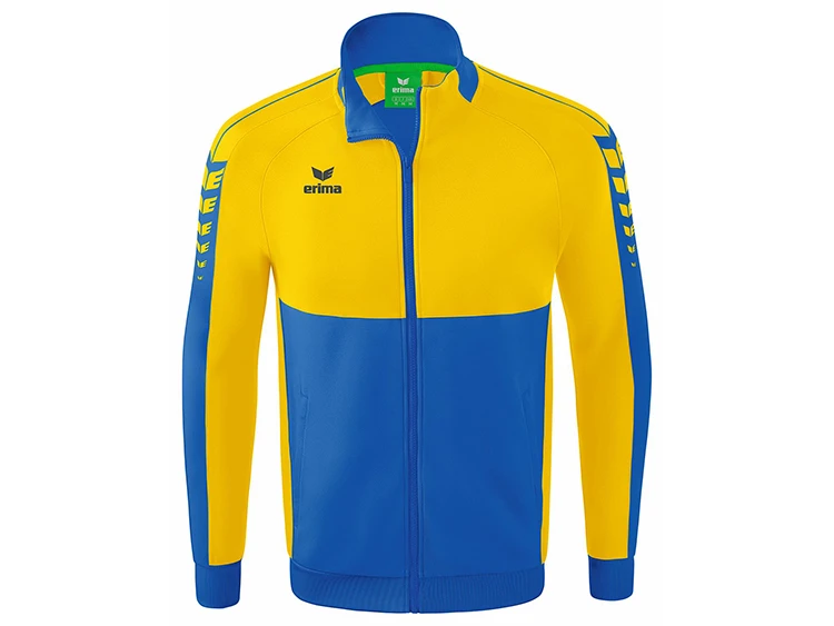 Sei stolz auf dein Team! Ob drin oder draußen, die Erima „Six Wings Worker Jacke“ ist immer einsatzbereit. Die Trainingsjacke ist aus einem extrem strapazierfähigen Polyestermaterial gefertigt, das jedem Training standhält. Optimal kombinierbar mit allen Teilen aus der Six-Wing Teamline des deutschen Sportartikelherstellers ERIMA mit Sitz in Pfullingen. Die vielen praktischen Details machen die Erima Six Wings Polyjacke zu deinem idealen Trainingspartner: Breite Rippbündchen an den Ärmeln und Saum sorgen für einen optimalen Sitz, der Stehkragen schützt vor Zugluft. Die Six-Wing-Jacke ist außerdem mit seitlichen Reißverschlusstaschen ausgestattet, in denen wichtige Gegenstände sicher verstaut werden können. Abgerundet wird sie durch ihr modernes Design: Der moderne, schmale Schnitt und das stylische Erima-Schwingen-Design auf der Schulter machen sie zu einem echten Blickfang. Lieferbar in 11 verschiedenen Farben. Gern beraten wir euch auch über den perfekten Druck auf deiner Trainingsjacke. Diese Polyjacke ist nur als Unisexschnitt nicht aber als taillierter Damenschnitt lieferbar.