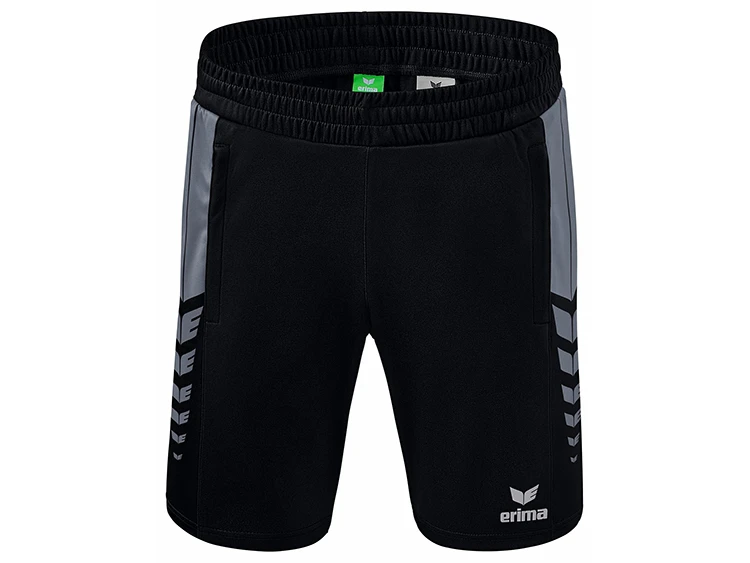 Funktionell und bequem! Ob Sport oder Freizeit, die Erima „Six Wings Worker Shorts“ unterstützt Dich in jeder Situation. Optimal kombinierbar mit allen Teilen aus der Six-Wing Serie des deutschen Sportartikelherstellers ERIMA mit Sitz in Pfullingen. Ob beim Sport oder im Alltag, mit den Shorts profitiert man aufgrund des funktionellen Polyestermaterials von einem angenehmen Tragegefühl. Die Short sitzt dank elastischem Bund mit Kordelzug optimal und verrutscht nicht. In den seitlichen Reißverschlusstaschen können wichtige Gegenstände wie Smartphone und Co. sicher verstaut werden. Ein optisches Highlight ist das Erima-Schwingen-Design an der Seite. Die Hose ist bei den Damen etwas kürzer geschnitten (Seitenlänge ca 36cm bei Größe 38) als bei den Herren (Seitenlänge ca. 50 cm bei Größe M) Lieferbar in 9 verschiedenen Farben. Gern beraten wir euch auch über den perfekten Druck auch euren Shorts.