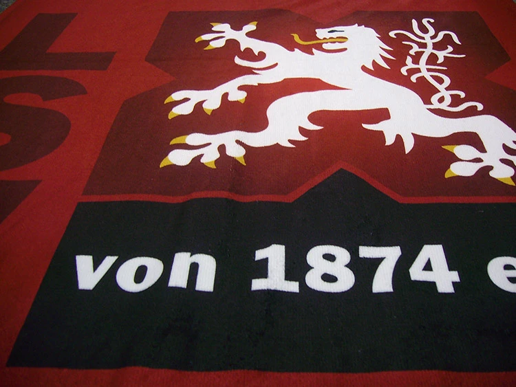 Ein optisches Highlight ist das Handtuch in den Maßen 50 x 100 cm. Wir veredeln dies mit einem hochwertigen Sublimationsdruck den wir ganz nach Euren Wünschen individuell auftragen. Jedes Motiv vom Foto bis zum Vereinswappen, vom Sponsorenlogo bis zur Grafik kann vollflächig bis zum Rand gedruckt werden. Euren Wünschen und Fantasie sind bei der Auswahl Motiven praktisch fast keine Grenzen mehr gesetzt. Beim Sublimationdruck-Verfahren wird die Farbe direkt auf dem Material bei einer Temperatur von ca. 200°C eingedampft (sublimieren) Die Farbe bleibt dabei direkt an jeder einzelnen Faser haften und wird nicht oben drauf mit einer harten Trägerschicht aufgebügelt. Die Farbpigmente sind somit ein Teil des Stoffes und werden nicht aufgeklebt wie z.B. beim Plotterverfahren üblich. Die HALTBARKEIT ist durch das direkte Eindampfen der Farbe in das Material mit keiner andere Methode vergleichbar! Der Sublimationddruck verliert sich bei unzähligen heißen Wäschen nie an Brillanz. Die UV- und Farbbeständigkeit sucht seinesgleichen.
