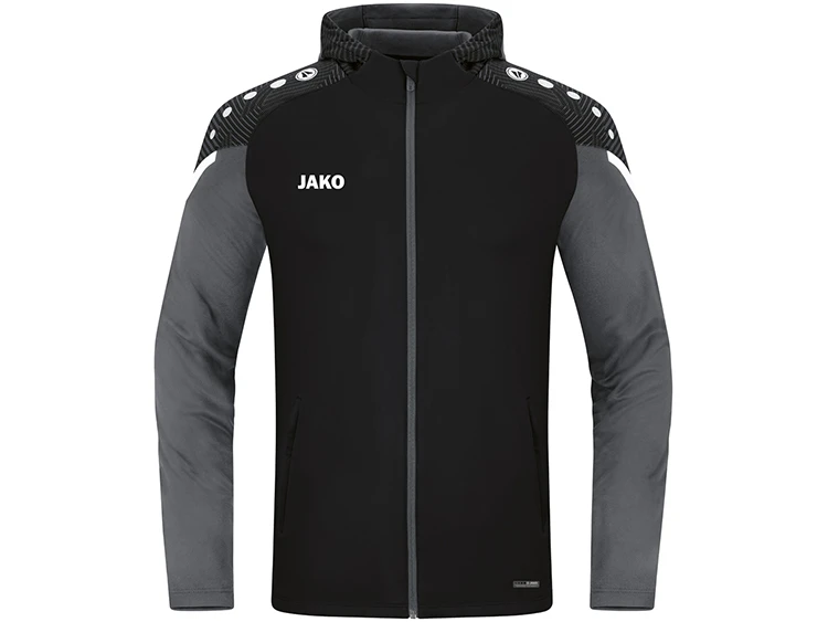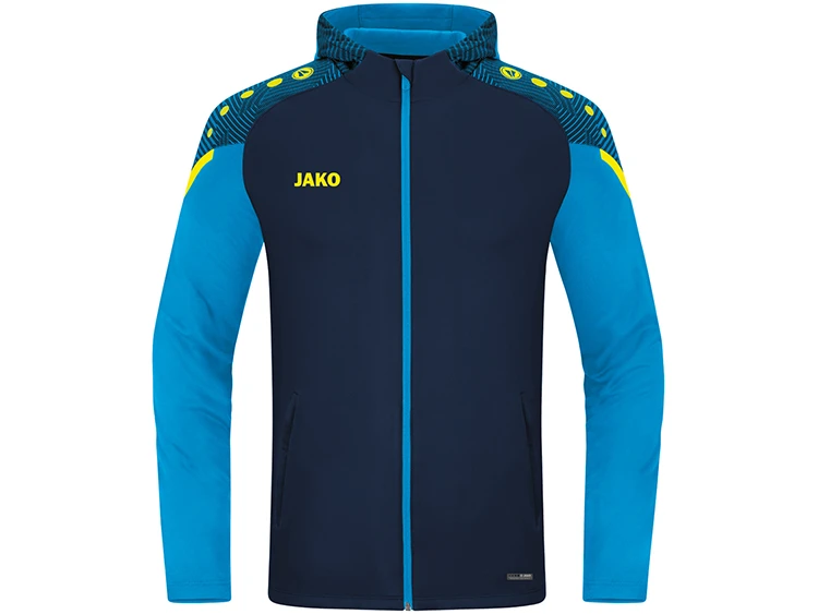 Nachhaltige Kapuzenjacke mit zahlreichen Details aus der neuen Jako Teamline Performance mit einer Laufzeit bis 2025. Seitentaschen mit Reißverschluss. Die Highlights der JAKO Kapuzenjacke Performance sind die Design-Elemente im Schultereinsatz aus Jacquard und die Kontraststreifen. Diese Design-Elemente sind ebenfalls in der Kapuze eingearbeitet. Kontrast-Tape an der Schulter. Die Kapuzenjacke verfügt über Seitentaschen mit Reißverschluss. 100 % der eingesetzten Materialien der Jacke bestehen aus recyceltem Polyester. Durch das Polyester-Fleece besitzt der Stoff eine weiche Oberfläche, die nur sehr wenig Feuchtigkeit aufnimmt und Schweiß zuverlässig nach außen transportiert. Unisex- oder taillierter Damenschnitt