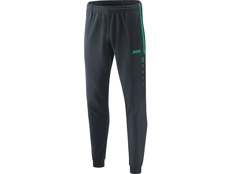 Die Polyesterhose 9218 bietet optimale Bewegungsfreiheit durch einen sportiven Schnitt und ein robustes Shiny-Polyester-Trico. Die Trainingshose hat Seitentaschen mit Reißverschluss, zweifarbige Reißverschlussanhänger, Beinabschluss mit Reißverschluss und Ripp, elastischer Bund mit Kordelzug