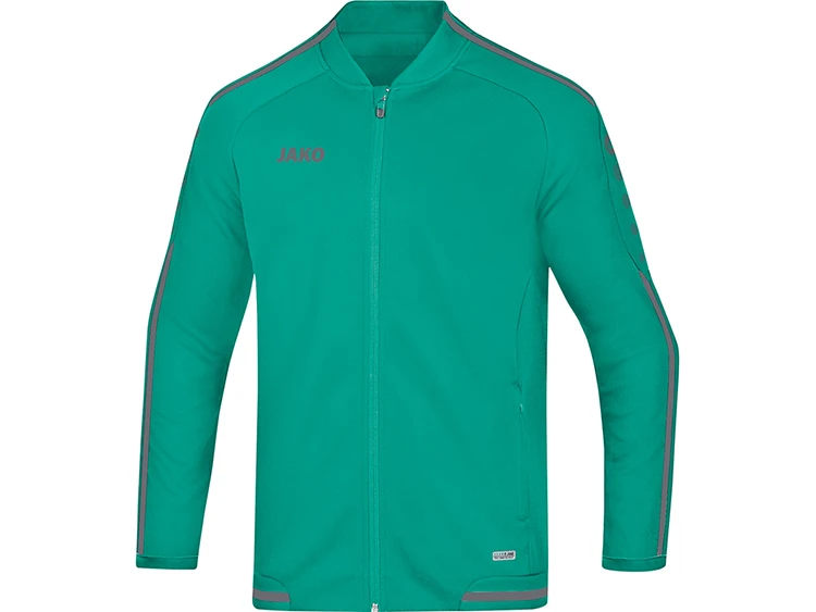 Die Präsentationsjacke Striker 2.0 des deutschen Teamsportspezialisten Jako ist Deine perfekte Ausrüstung vor, während und nach dem Sport. Das typische Merkmal der Linie ist der Kontraststreifen im Ärmel- und Schulterbereich. Modischer Stehkragen, in den Seitentaschen mit Reißverschluss lassen sich kleine Gegenstände problemlos verstauen. Zweifarbiger RV Anhänger, Innenseite ist aus Micro-Fleece. Die Jacke 9819 ist in den Größen S – 4XL für Männer und 34 – 44 im taillierten Damenschnitt für Frauen verfügbar. Die Jako Teamline Striker 2.0 Serie hat eine Laufzeit bis 2022