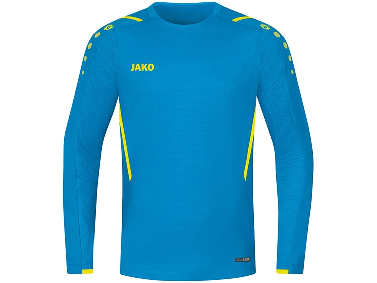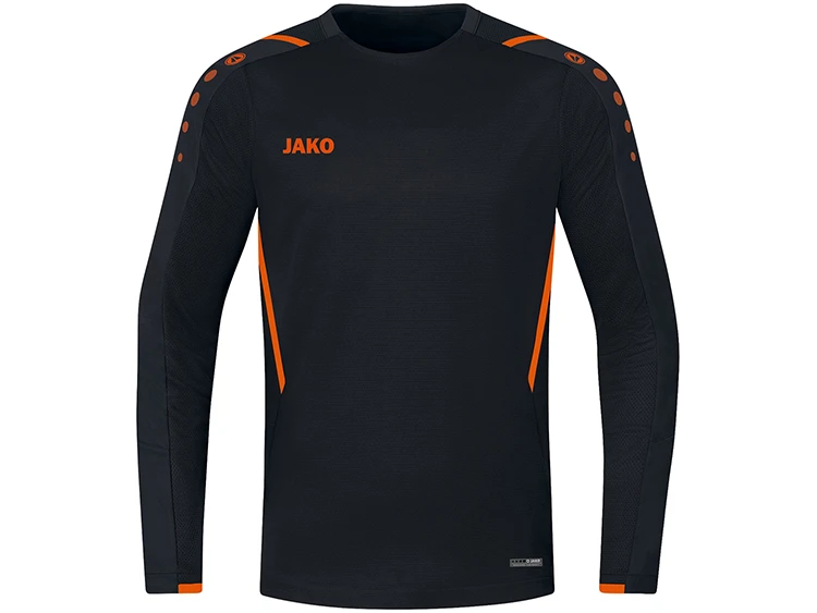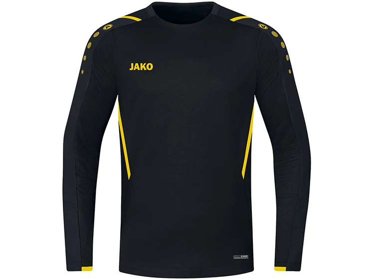 Das Sweat-Shirt Challenge eignet sich für jede Herausforderung. Bestehend aus funktionellem Polyester mit 10% Elastan sitzt es dank seines sportlichen Schnitts optimal am Körper. Der Rundhals-Rippkragen verleiht einen klassischen Look – typisch für ein hochwertiges Sweat beim Sport. Top- und Ärmelabschlüsse mit Elastischem Kontrasteinsatz garantieren den passenden Sitz am Körper. Das Sweatshirt ist in 9 verschiedenen Farben verfügbar: rot/schwarz, maroon/marine, sportgrün/schwarz, royal/marine, Jako blau/neongelb, steingrau/schwarz, schwarz(weiß, schwarz/citro sowie schwarz/neonorange