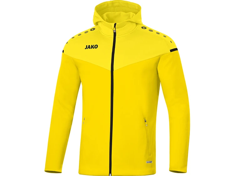 Trainingsjacke mit Kapuze mit einer Laufzeit bis 2023. Bonded-Polyester-Fleece für einen sensationellen Tragekomfort. Seitliche Reißverschlußtaschen, hoher Kragen mit Kapuze, Kontraststreifen am Ärmel, passt ideal zur neuen Jako Trainingshose Premium oder Polyhose Competition. Die moderne Jako Teamsportserie Champ 2.0 besteht aus einer Vielzahl von tollen und sehr funktionellen Teilen die alle optimal untereinander zu kombinieren sind wie z.B. Jako Präsentationsjacke Champ 2.0, Jako Polyjacke Champ 2.0, Jako ZipTop Champ 2.0, Jako Sweat Cham 2.0, Jako Polo Champ 2.0, T-Shirt Champ 2.0 oder das passende Trikot. Die Teamline ist in 10 verschiedenen Farben bis zur Größe 4XL verfügbar. Viele Teile sind auch als taillierter Damenschnitt lieferbar. Gern beraten wir euch auch über die optimale Beflockung mit Nummern, Vereinswappen, Sponsorenlogos oder ganz neu mit 3D Wappen.
