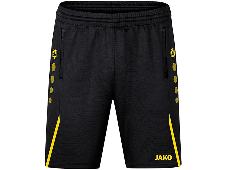 Mit der Jako Teamline Challenge wird dein Auftritt im Training zum absoluten Highlight. Funktionale Materialien und passgenaue Schnitte runden das sportive Design optimal ab. Passend zu den Oberteilen der Teamline Challenge gibt es die Trainingsshort Challenge. Das moderne Design und die typischen Details der Teamline spiegeln sich in der Trainingsshort wieder. Die Seitentaschen mit zweifarbigem Reißverschlussanhänger sind besonders praktisch. Im Training oder beim Joggen im Park kannst Du deine Wertsachen sicher Verstauen. Mithilfe des elastischen Bunds mit Kordelzug kannst Du die Weite der Hose individuell anpassen. Vervollständigt werden die Details der Trainingsshort durch die JAKO Dots und das Jako Label. Die Jako Trainingsshort Challenge ist nicht nur funktional für das Training sondern auch komfortabel für die Freizeit. JAKO ist bekannt für eine riesige Farb- und Größenauswahl. In zehn Farben ist die Trainingsshort erhältlich.