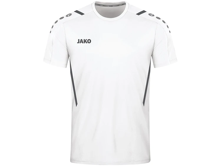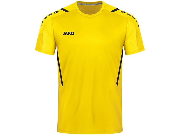 Jako Teamline Challenge 2.0 ist eine klassische Teamline im typischen JAKO Design. Auf dem Trikot mit Rundhalskragen der Linie ist der charakteristische Streifen in Kombination mit den JAKO Dots im Ärmel- und Schulterbereich zu sehen. Das Oberteil ist aus Polyester – Interlock gefertigt, schnelltrocknend und pflegeleicht. Die JAKO Funktion KEEP DRY unterstützt den Feuchtigkeitstransport durch das Textilmaterial hindurch nach außen. Das Rückenteil besteht aus einem Einsatz aus Micro – Mesh platziert, das die Sportbekleidung noch atmungsaktiver macht. Das Jako Trikot Challenge ist erhältlich in sechzehn Farbvarianten. Erwachsene tragen die Größen S – 3XL, Kinder 116 – 164 und Frauen den Damenschnitt von 34 – 44. Kombiniere diese Spielkleidung mit den passenden Artikeln und stelle so den individuellen Trikotsatz für deinen Verein zusammen. Erhältliche Farben: rot/schwarz, maroon/marine, sportgrün/schwarz, royal/marine, Jako blau/neongelb, steingrau/schwarz, schwarz(weiß, schwarz/citro sowie schwarz/neonorange