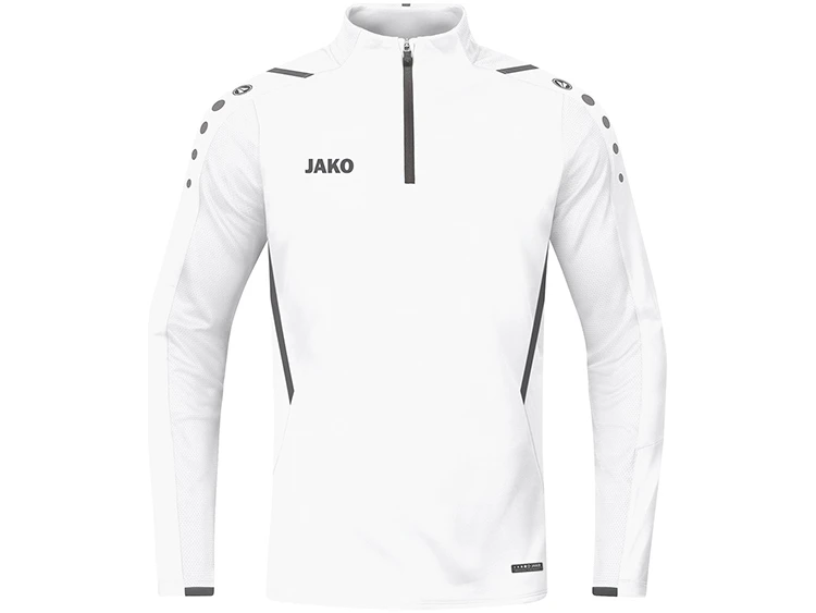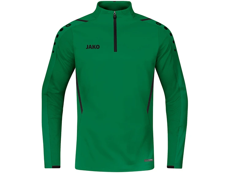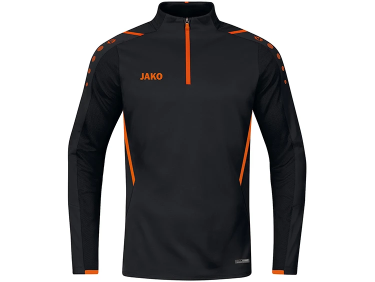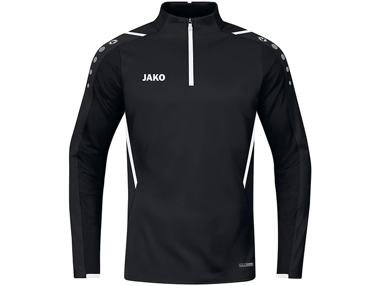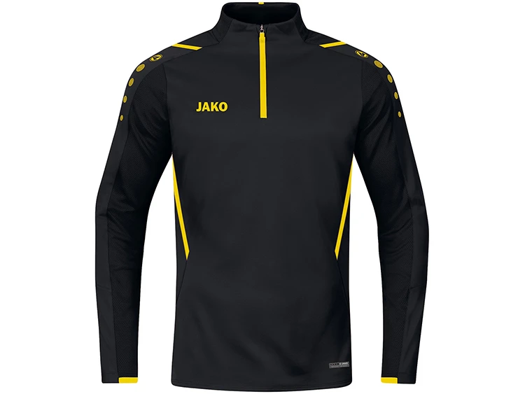 Mit dem Ziptop aus der Teamline Challenge 2.0 bist Du beim Sport optimal ausgestattet. Die Kontraststreifen an den Ärmeln, Schultern und dem Saum verleihen dem Ziptop das typische Design der Teamline. Der Stehkragen mit dem Kontrast – Tape and den Seiten und der zweifarbige Reißverschluss mit Zippergarage sind moderne Designelemente. Das aus Polyester-Stretch-Fleece bestehende Ziptop ist mit einer weichen Fleece Innenseite ausgestattet, der Stoff transportiert Feuchtigkeit durch das Textilmaterial hindurch an die Oberfläche, wo sie verdunsten kann. Erhältlich ist das Jako Trainingstop Challenge in zehn verschiedenen Farben in den Größen 128 – 164 für Kinder und S – 3XL für Herren. Weiterhin bietet das Ziptop Jako Challenge mit großen Freiflächen optimale Möglichkeiten zur Veredelung. Das Trainingstop ist in den Farben rot/schwarz, maroon/marine, sportgrün/schwarz, royal/marine, Jako blau/neongelb, steingrau/schwarz, schwarz(weiß, schwarz/citro sowie schwarz/neonorange verfügbar.
