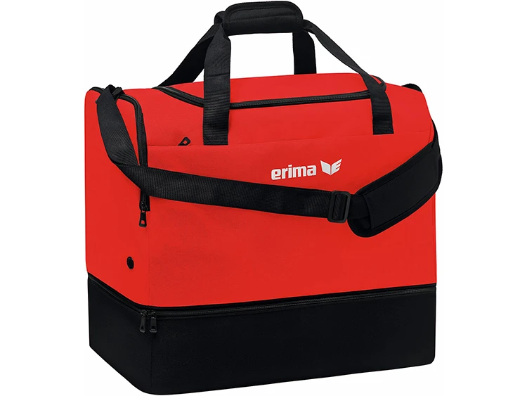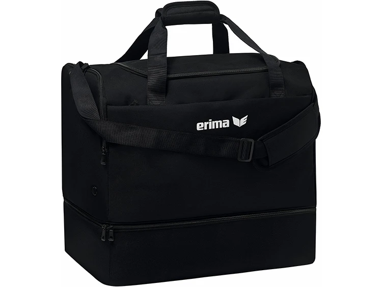 Erima TEAM Sporttasche mit Bodenfach in 5 verschiedenen Farben. Großer Doppelreißverschluss am Hauptfach, Tragegurt + Schultergurt, Polsterung am Schultergurt, Seitentasche mit intigiertem Naßfach, Fronttasche mit RV, Größe 65x31x45 cm, ca 90 Liter, Größe L